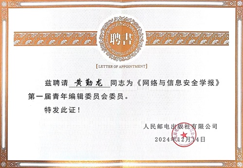 - 2024年11月, 博士生石彩群组队获得第三届中国研究生网络安全创新大赛全国三等奖